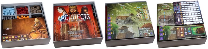 Органайзер разработан для размещения компонентов игры Architects of the West Kingdom, дополнения Age of Artisans и промо-материала. Дизайн органайзера обеспечивает эффективное хранение компонентов, а также упрощает процесс подготовки к игре и сбору компонентов по её завершении. Многие лотки могут быть использованы во время партии. Лоток для монет одинаково хорошо подходит как для монет из игры, так и для металлических монет.