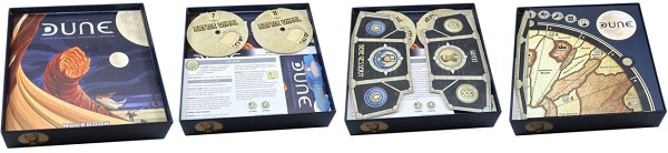 Органайзер разработан для компонентов базовой игры Dune и дополнения Dune: Ixians & Tleilaxu House. Дизайн органайзера обеспечивает эффективное хранение и удобное использование компонентов во время игры. Многие лотки могут быть использованы во время партии, а также упрощает процесс подготовки к игре и сборки компонентов по ее завершении. Органайзер подойдет как для обычной версии игры, так и для лимитированной.