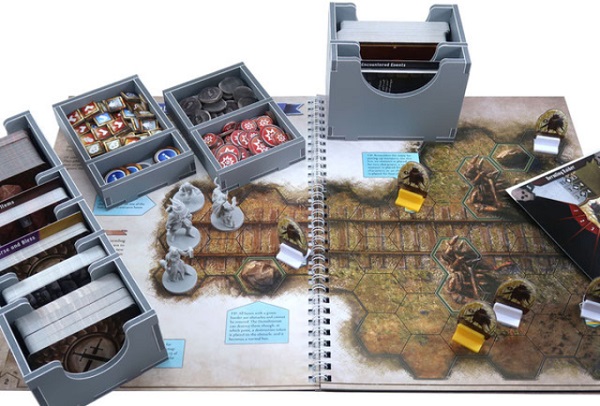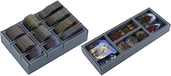 Для каждого типа компонентов предусмотренно своё место. Небольшие жетоны врагов размещаются в отдельном лотке вертикально, крупные - горизонтально в отдельном лотке с тайлами ландшафта.