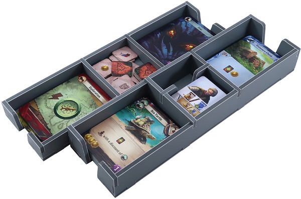 В этом органайзере предусмотренно место для каждого компонента, а в лотках для карт достаточно места для размещения карт в протекторах качества premium. В нижнем слое есть пустая вставка, которая фиксирует остальные лотки. В случае если к игре будут выходить дополнения, это место можно будет использовать для размещения компонентов из него.