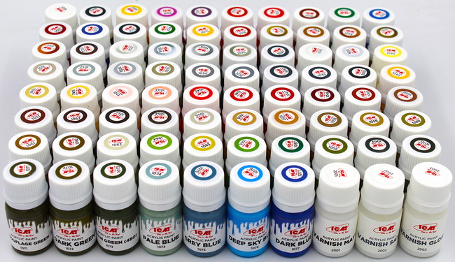 3004 - Краска для моделей и миниатюр, большой набор ICM Acrylic Paint Set: 80 pcs (77 color + 3 varnishes)