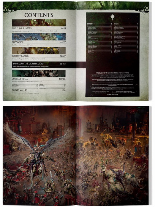 Кодекс - почти обязательный атрибут игрока той или иной фракции. Он не только позволит разобраться с основными механиками ведения боя, но и расскажет историю фракции и покажет как можно собирать и красить миниатюры. Кодекс Гвардии Смерти 10-й Редакции - 128-страничное руководство правил, которое позволит без посторонней помощи играть этой фракцией внуков дедушки Нургла 41-го тысячелетия.Описание книги правил Codex: Death Guard - 10th Edition