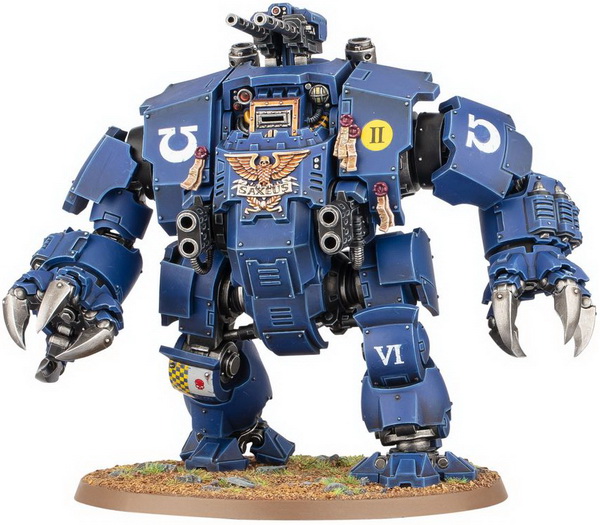 Из этого многодетального пластикового набора можно собрать один дредноут «Бруталис», внушительную боевую машину, предназначенную для ближнего боя. Этот мощный шагоход может быть оснащен бронированными кулаками со встроенными болт-винтовками или парой заостренных когтей, способных кромсать как броню, так и пехоту. Он также оснащен сдвоенными тяжелыми стабберами Icarus Ironhail на корпусе и парой установленных на шасси орудий — либо тяжелых болтеров, либо мультимельтов, способных уничтожать танки.