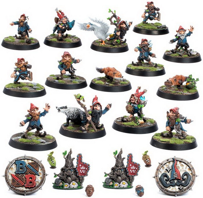 - материалы для сборки 14 миниатюр Gnome Blood Bowl Team: The Glimdwarrow Groundhogs (с соответствующей подставкой для каждой из них);