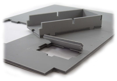 Листы Evacore режутся методом высечки, чтобы обеспечить точную резку в соответствии с разработанной конструкцией органайзера. Поскольку материал расширяется после удаления пресс-форм после резки в прессе, детали органайзера остаются внутри листа. Благодаря этому нет необходимости в каких-либо точках соединения деталей с листом, и перед сборкой достаточно просто выдавить их без дополнительных разрезов или отрывов.