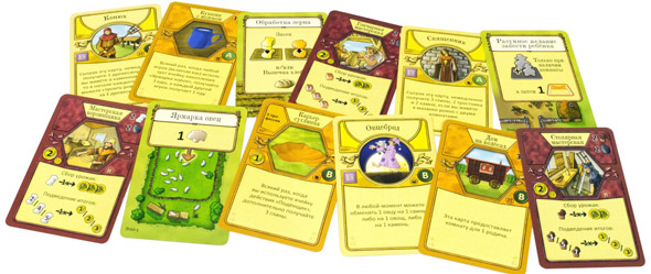 Раунд за раундом ваше фермерское хозяйство обзаведется животными, на вспаханных полях будут расти зерно и овощи, хижина станет больше и сможет вмещать новых членов вашей семьи. Чем больше ваша семья, тем больше дел по хозяйству вы сможете выполнить. Но стоит помнить о том, что вам необходимо накормить вашу семью в конце раунда, который заканчивается Урожаем. Таких раундов в игре шесть. Во время урожая все игроки собирают урожай с полей, увеличивают поголовье своего скота и кормят членов своей семьи.