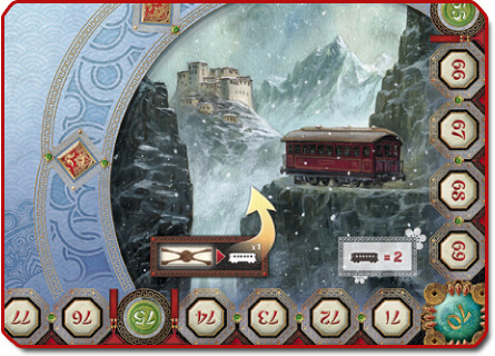 Строительство горного перевала всегда несет риск потери некоторого числа вагонов. Поэтому игрок, решивший занять данный участок пути, должен вывести из игры столько своих вагончиков, сколько значков Горных перевалов указано на перегоне. Выведенные фигурки вагонов размещаются на игровом поле в специально отведенное место.