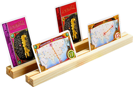 У каждого игрока есть не только свои личные маршруты и карты вагонов, но и общие, командные карты, размещенные на держателях для карт.