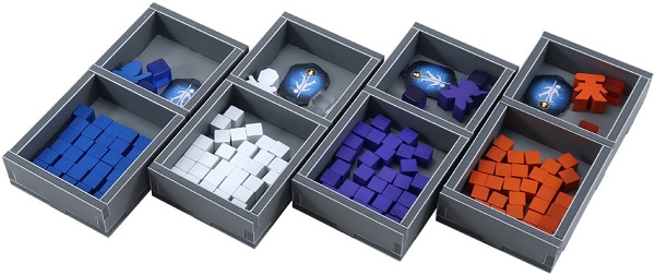 Додайте всі лотки і компоненти гри як зазначено на фото нижче, при такому розміщенні коробка буде заповнена вщерть і її можна зберігати вертикально.