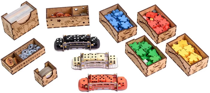 Органайзер розроблений для розміщення компонентів гри "Білий Замок" та доповнення Promo 1 (яке включене в коробку української локалізації гри). Автори подбали, щоб ви не тільки економили час на розкладку та прибирання компонентів, а ще й отримали естетичне задоволення від гри. Завдяки тематичному малюнку він не тільки зберігає ваші компоненти впорядкованими, але й покращує занурення. Органайзер має окремі лотки для всіх компонентів у грі, а також розрахований на розміщення карток у протекторах товщиною до 60 мікрон.