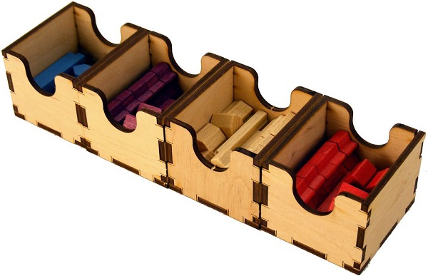 Елементи органайзера виконані з фанери, матеріал має приємний запах дерева. Збірка органайзера займе 20 хвилин часу і не вимагає клей та інші додаткові інструменти. У зібраному стані розмір органайзера 30.7х21.5х4.5 див. Картхолдер розрахований на картки у протекторах Лотки легко дістаються з огранайзера, що дозволить зручно розташувати компоненти на столі.