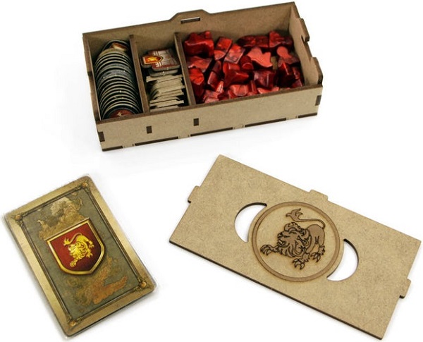 Перед вами корисний аксесуар для Ігри Престолів, призначений для розміщення компонентів базової гри і доповнення Мати Драконів. Тепер компоненти будуть компактно розміщені в коробці, а підготовка до гри займе кілька хвилин. Вдале рішення з боксами для кожного з 8-ти будинків: всі жетони будинку дістаються з боксу в процесі гри і не займають зайве місце за столом. Практично, зручно і красиво.
