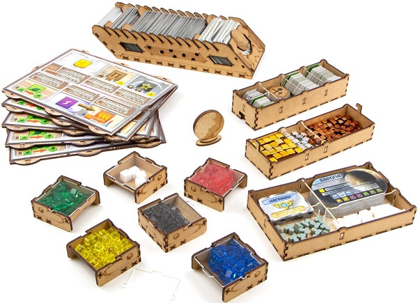 Найважливіша перевага органайзера - це наявність планшетів. Тепер за столом не страшні різкі рухи і падіння компонентів - завдяки планшетів всі ваші досягнення в розвитку залишаться несдвинутыми. Якщо ви грали в Тераформування Марса, вам не потрібно пояснювати важливість такого аксесуара. Планшети мають фанерну підставу і акрилову кришку, використовуються з планшетами з гри.