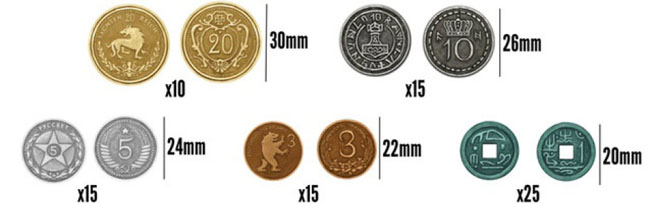 Всім власникам настільної гри Scythe рекомендуємо звернути увагу на ці красиві монети. Монети виконані з металу і замінюють картонні жетони у вашій грі. У комплекті знаходиться 80 монет п'яти номіналів (1, 3, 5, 10 і 20). Відчуйте всі красу і атмосферу гри з компонентами, що відповідають якості гри Scythe.