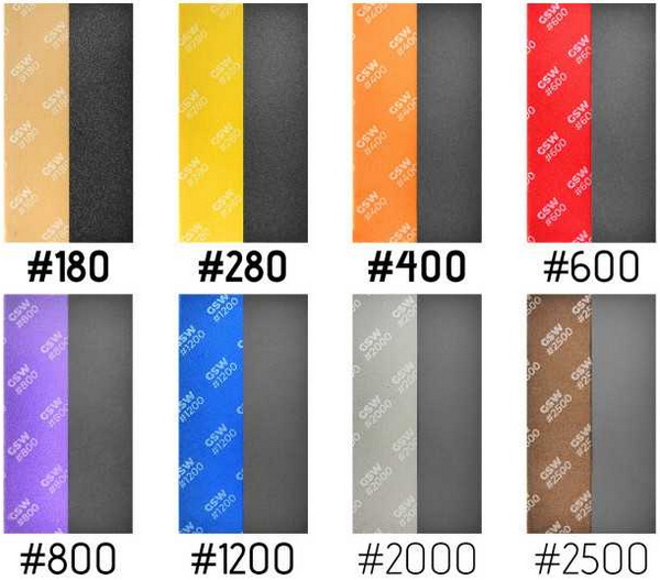 Загалом лініка Foam Sanding Pads від виробника GSW нараховує 8 різних зірністостей наждачної піни: 180, 280, 400, 600, 800, 1200, 2000, 2500.