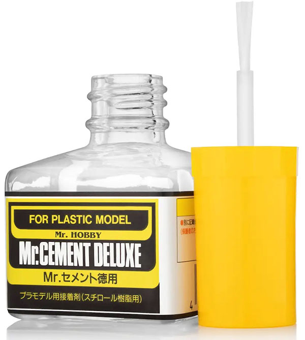 Mr.Cement Deluxe - клей для пластикових моделей. Його можна використовувати для всіх елементів полістирольної моделі. Клей розчиняє/плавить верхній шар пластику і після з’єднання елементів відбувається випаровування, що створює міцне з’єднання.