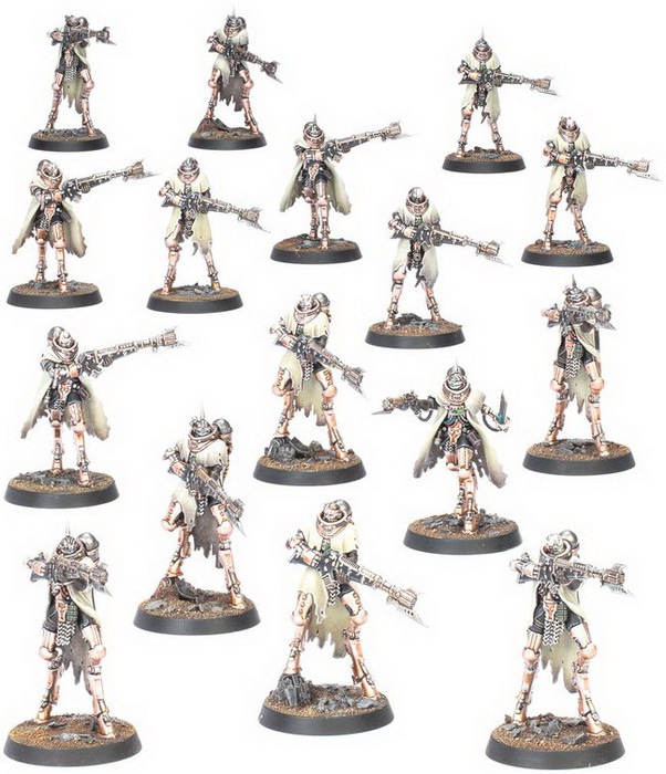 - Матеріали для складання 16 мініатюр Skitarii Battle-Pilgrym Corpus (з відповідною підставкою для кожної з них);