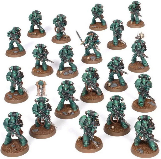 Цей набір складається з 352 пластикових деталей і поставляється з 20 круглими підставками Citadel 32 мм і 1 транспортувальним листом піхоти Легіонес Астартес.