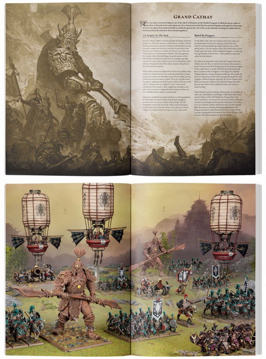 Армії Великого Катаю, відповідальні за оборону Великого Бастіону, — це досвідчені та перевірені в боях воїни. Століттями вони стримували легіони Руйнівних Сил. Хоча Імперія Небесного Дракона лежить далеко від народів Старого Світу, катайські торговці борознять океанські хвилі сотні років, а величезні армії Нефритових Воїнів та Уланів обіцяють боротися пліч-о-пліч з арміями Заходу або проти них у часи небезпеки.