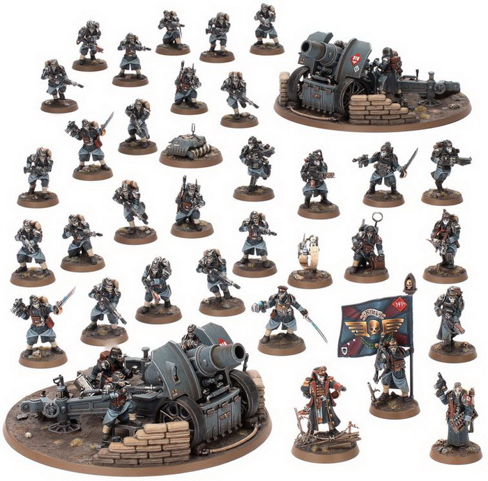 - матеріали для складання 35 мініатюр Astra Militarum (з відповідною підставкою для кожної з них);