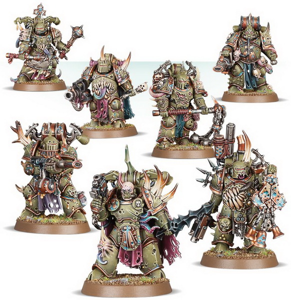- матеріали для складання семи мініатюр Plague Marines (з відповідною підставкою для кожної з них)