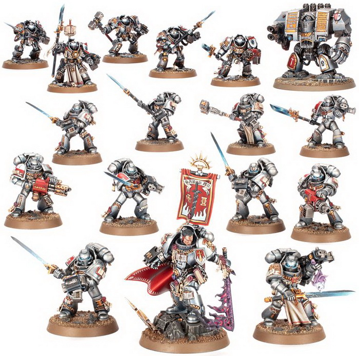 Цей набір містить 17 мініатюр Сірих Лицарів: