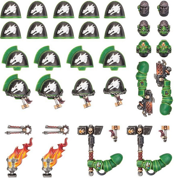 - 5 Salamanders MK X power armour shoulder pads (для використання з юнітами Hellblasters/Intercessors)