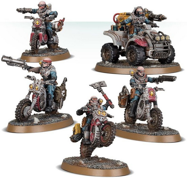 Цей набір дозволяє зібрати один загін із 5 аталанських шакалів – чотирьох на мотоциклах у супроводі аталанського квадроцикла. Ви зможете налаштувати свої загони за допомогою безлічі зброї ближнього бою, вибухових зарядів і зброї далекого бою, що дозволить вам спорядити підрозділ для різноманітних ролей на полі бою. Подібним чином Wolfquad пропонує опції для шахтного лазера, інсинератора Atalan або важкого стабера, пропонуючи вам ще більше гнучкості. Усі кронштейни в наборі взаємозамінні, і ви матимете величезний вибір головок та аксесуарів, щоб індивідуалізувати свої моделі.