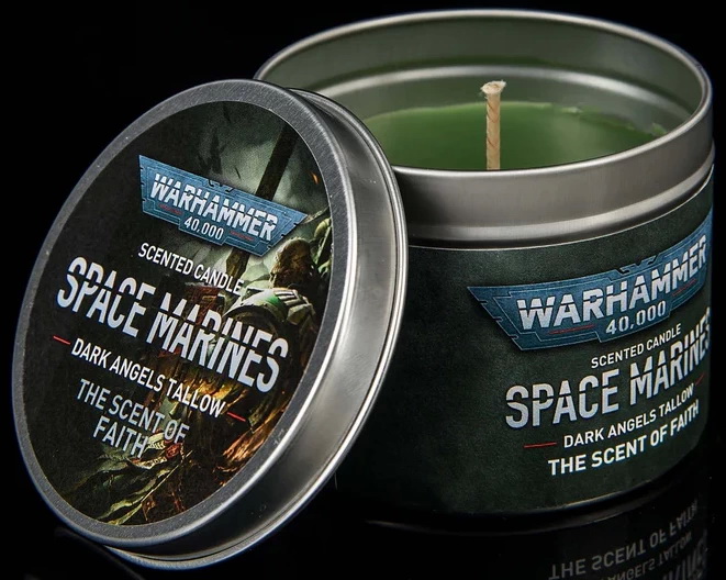 Коли ця свічка палає залитим калибанським зеленим полум’ям, повітря наповнюється “запахом віри” — ароматом твердості і незламного духу Темних Ангелів. Металева банка з геральдикою Warhammer 40 000 ніби містить в собі ритуал відданості, а 22-годинне горіння створює ауру спокою перед штормом битви. Це як вогонь у серці космічного десантника — символ сили, віри та холодної дисципліни.Опис сувеніра Свічка Warhammer 40000: Space Marines Candle