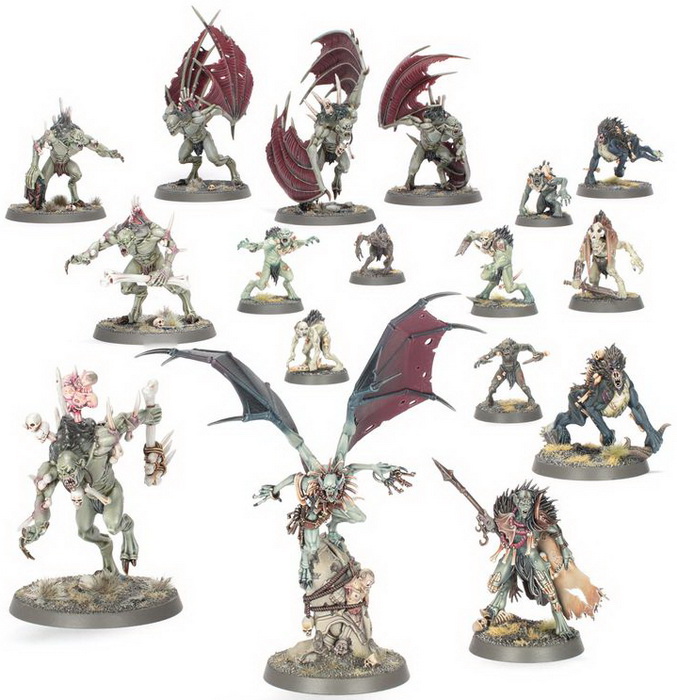 - матеріали для складання 17 мініатюр Flesh-eater Courts – Charnel Watch (з відповідною підставкою для кожної з них)