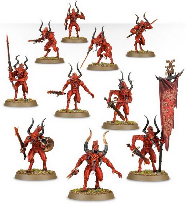 - матеріали для складання 10 мініатюр Демонів Кхорна (з відповідною підставкою для кожної з них)