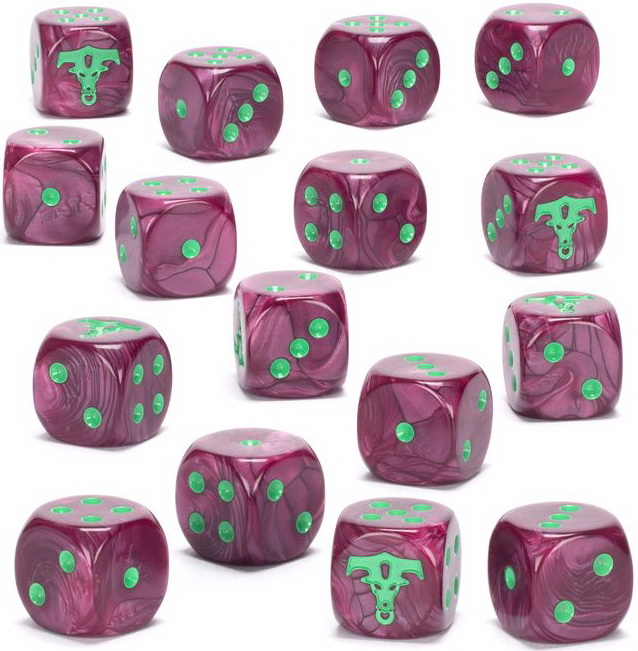 Бороди: завиті. Бивні: стирчать. Посмішки: зневажливі. Це Хельмові ковалі з Хашута, спотворені дуардини, що плекають ненависть, що горить, до Царства Смертних, їхні очі світяться, як попіл, навіть коли їхні тіла повільно перетворюються на камінь. У характерній цим хаотичним гномам пурпурно-нефритовій гамі ці кубики відмінно поєднуються з мініатюрами. Набір складається з 16 кубиків у картонній коробці.Набір кубиків Helsmiths of Hashut Dice Set