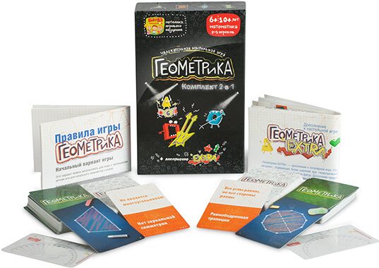 Геометрика Комплект 2 в 1 – це подарунковий набір, що складається з базової гри Геометрика і доповнення Геометрика Extra. Даний набір в ігровій формі познайомить дітей з базовими поняттями геометрії, навчить порівнювати фігури, а також знаходити їх подібності та відмінності.