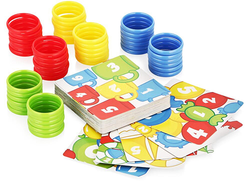 Ми б віднесли гру Rings Up до золотої колекції дитячих ігор. Розвиваюча, весела і красива! Дітей від подібних ігор за вуха не відтягнеш. Розвиває дрібну моторику рук, спритність, увагу, зорове сприйняття і власне самий зір. Рекомендуємо використовувати цю гру на перервах між уроками, або вдома в проміжках між домашніми завданнями, як відпочинок і розминку для очей і пальців. Час партії, якраз підходить.Опис настільної гри Rings Up, Різнокольорові колечка