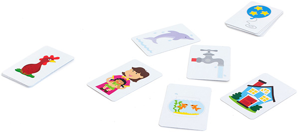 Так, зверніть увагу на малюнки. На обох сторонах однієї картки, знаходяться однакові малюнки, тільки з невеликими змінами.