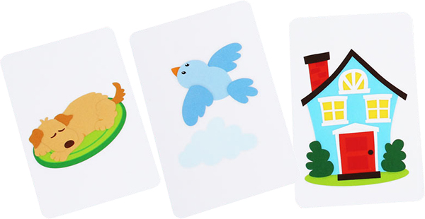 Наприклад, пташка сидить на дроті і пташка летить, будинок з вимкненим світлом і з включеним, щеня на килимку не спить, і ось воно вже спить.