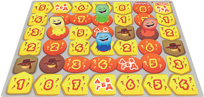 Розділіться на команди, щоб у кожній було хоча б 2 гравці. На стартову клітинку ігрового поля установіть фішку кожної команди.