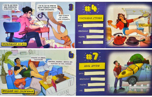 Всередині книжки знаходиться 12 чеків. Ви можете використовувати їх за найближчі 12 днів, а можете розтягнути задоволення, наприклад, відриваючи по одному чеку на місяць.