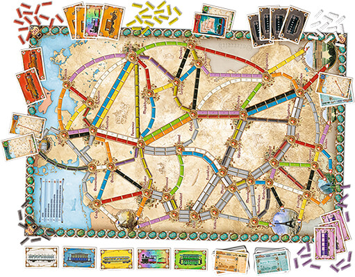 Гравці отримують по 45 вагончиків свого кольору, а також кілька карт завдань (квитків на потяг), в яких зазначено, які міста їм необхідно з'єднати єдиним маршрутом до кінця гри. Завдання гравців збирати комплекти карт різнокольорових вагонів, які згодом можна буде розіграти для з'єднання міст.