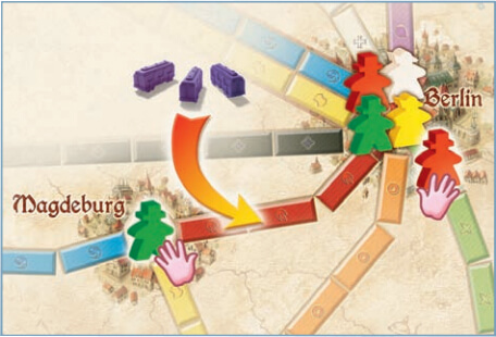 Ігровий конфлікт полягає в конкуренції за право зайняти порожній перегін. Якщо потрібний вам перегін зайнятий, доведеться йти в обхід іншими шляхами – витрачати додаткові ходи і ресурси. Як ви розумієте, основні правила Ticket to Ride: Germany нічим не відрізняються від попередніх ігор Квиток на поїзд: Європа або Квиток на поїзд: Америка. Однак, кожна гра має свою особливість, що відрізняє її від інших. На німецькій карті – це пасажири.