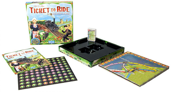 Ticket to Ride: Nederland – це доповнення до базової настільної гри Ticket to Ride або Ticket to Ride: Europe, яке включає в себе карту Нідерландів, нові картки маршрутів (квитків), а також жетони (монети) для оплати будівництва перегонів. Як і будь-яка інша версія гри Квиток на Поїзд, правила Нідерландів передбачають свою унікальну особливість, родзинку. Цікаво? - Не те слово!