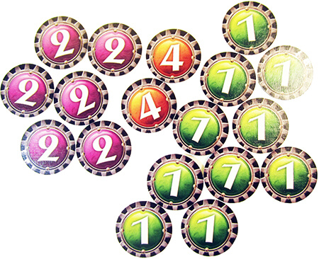 Бонуси за монети розподіляються між гравцями від найбагатшого до найбіднішого та мають досить суттєву вагу в підсумковому результаті. Увага! Бонусні очки за монети не отримують гравці, які володіють картами кредитів.