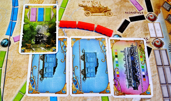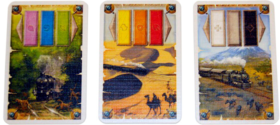 Єдине, що потрібно зазначити, що картки вагонів йдуть гравцеві в руку, а карти місцевості викладаються перед ним у відкриту.
