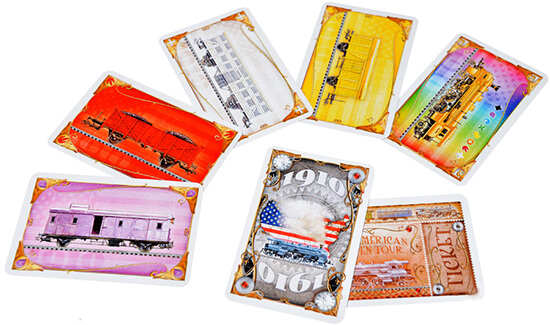 Видавці подбали про те, щоб купуючи додаток Ticket to Ride: USA 1910, ви змінили всі карти в грі. Тому в коробці ви знайдете: нові, передруковані карти з базової гри. Дуже правильне рішення, на наш погляд. По-перше, карти могли втратити свій вигляд, а по-друге, вони не повинні відрізнятися станом від нововведених карт доповнення.