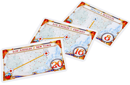 - Великі міста. У цьому варіанті залиште в колоді карт маршрутів тільки картки з великими містами (мегаполісами). У вас повинна вийти колода з 35 карт.