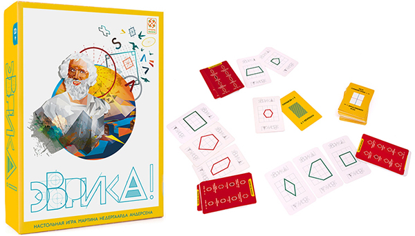 Учасникам настільної гри Еврика! належить блиснути окоміром і мінімальними базовими знаннями Геометрії. Втім, якщо деякі гравці ще не знайомі з поняттями Периметр або Площа фігури, в цьому немає нічого страшного. Вже після першої партії вони вивчать мало не весь курс Геометрії за 5-й клас (усмішка). Перед вами гра-вікторина, учасники якої будуть на швидкість знаходити фігури, які відповідають заданим умовам.
