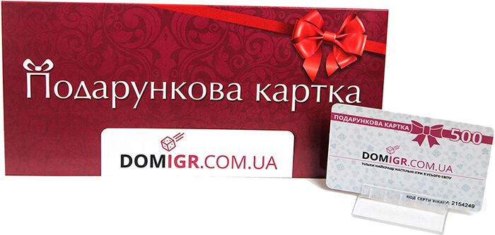Звичайно, набагато приємніше дарувати конкретну гру, але якщо у вас долають сумніви, Подарунковий сертифікат – це добра альтернатива. Від себе, гарантуємо завжди мати широкий асортимент настільних ігор і приємні ціни, щоб володар сертифіката залишився максимально задоволеним.