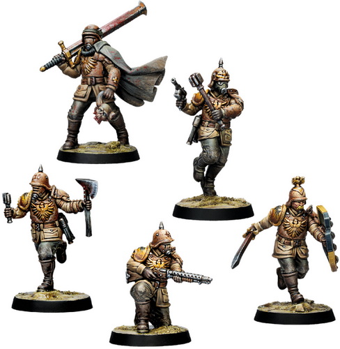 - материалы для сборки 5 миниатюр Prussian Stosstruppen - Trench Crusade (с соответствующей подставкой для каждой из них)